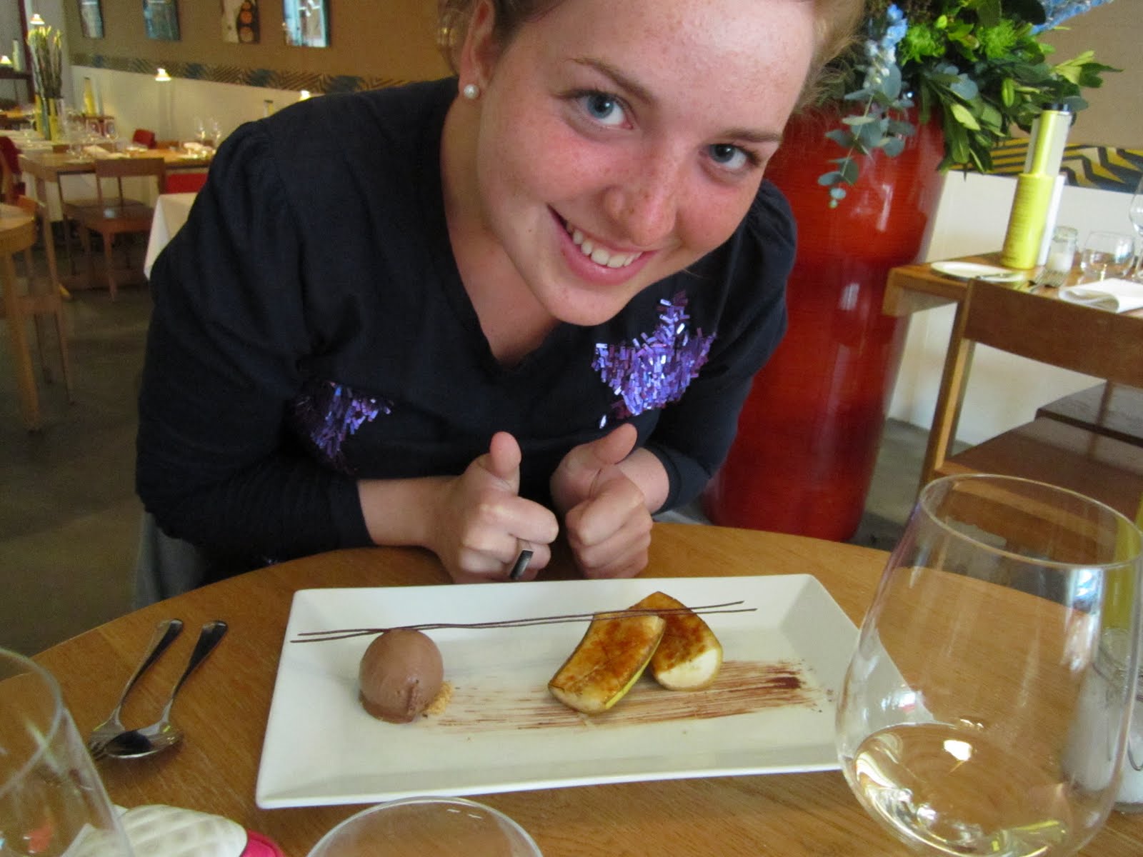 Het dessert: gekarameliseerde banaan met chocoladeijs!